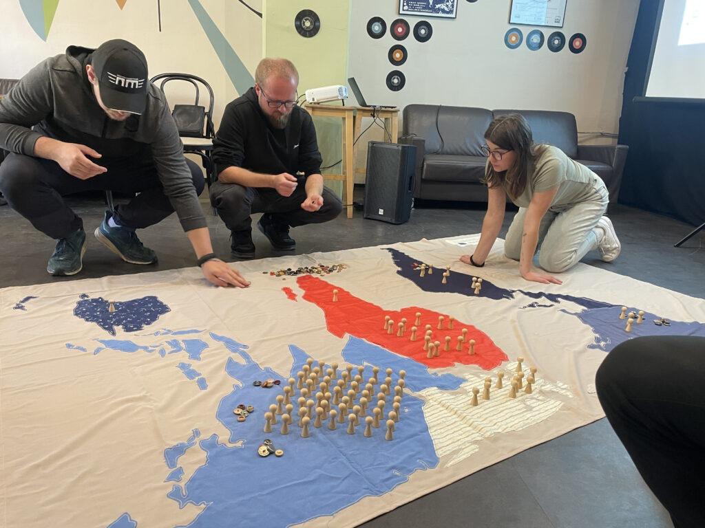 Poleg predstavitve projekta in digitalnega priročnika »Glasovi iz vode« (ang. Voices Through Water), namenjenega vsem, ki želijo z mladimi preizkusiti ustvarjalne in aktivističn metode dela, smo izvedli tudi interaktivno delavnico na temo globalnih neenakosti in migracij.